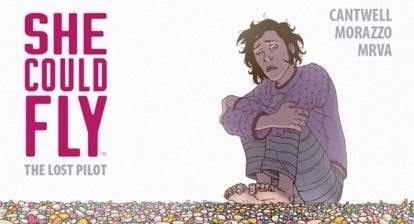 Credit where credit is due: Cantwell has an inherent understanding of the comic medium and how to get the most of his splash pages. He uses them for strange images that underscore the messages of his series, using them to perfection in She Could Fly. There’s another great one in this issue.
