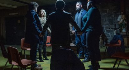 AARON B. KOONTZ: Because the Saw movies are – no offense to the people who made them – stupid and nonsensical, like there’s a moment when Dwight’s character, Graham Skipper, asks everyone else “Do you know what’s going on?” And that was me, watching Saw 7 you know? Just going like, what is happening? So that was immediately very funny to me. I will say, though, the other one that I did think about was more of a Ring style thing, because there are tapes and someone coming out of the TV, and I was thinking there might be something fun in there that we could play with it, but that just didn’t really land because, number one, writing Jigsaw’s silly dialogue was so much fun and then, two, you get to create these escape room type things, which I was really into escape rooms and I was also in lockdown at the time, writing this, and figuring shit out. But, most importantly, to me, was that I now get to come up with the dumbest Saw traps of all time, and that became… I just felt like this is great, this is so much fun.