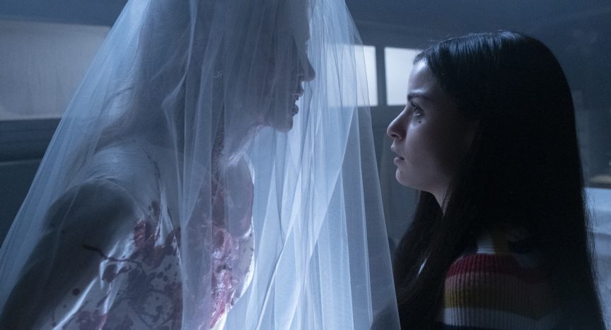 Natalia Safran: I actually drew quite a bit of inspiration from an animated character, Tim Burton’s the corpse bride. I have always loved that movie and found her a really moving figure – so sad, lost and not really aware of who she has become. The Bride doesn’t think she’s being blood curdling. She’s lost in the dark sliver of space, in between worlds that her past has brought her to, trying to get out. There’s an insatiable hunger inside that soul she must try to satisfy, a longing so consuming she falls victim to it herself, or she just really likes carving knives and hates weddings! Norbie, our brilliant stunt coordinator on the movie, helped me figure out her walk which was tough to crack at first. It’s not easy to walk like an uber determined she-demon. Once I found the head crook, I knew I was ready. Our director, Gary Dauberman, set the stage so perfectly that between the great lighting, smoke, and awesome scene set ups it was easy to find myself ‘inside’ the character.