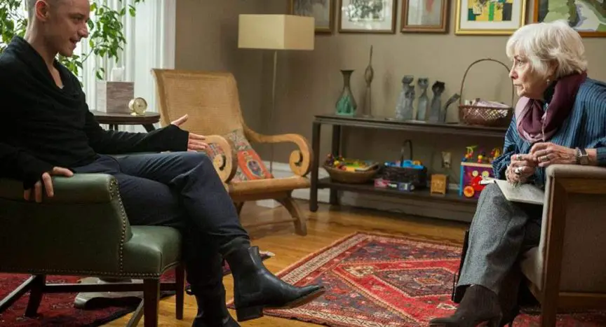 BB: Yeah, I worked for several weeks with a psychologist in New York City. I took the script to her and we pored over it, all my scenes, and she helped me understand how Dr. Fletcher would be feeling moment to moment and how she would be organising herself, with regards to professional decorum and how to handle oneself in a therapeutic setting. She also made herself available during the shooting, so that I could call her the night before shooting the scenes with James, so I could make sure I understood all of the notes I’d been given. So, that was a big help. I also read three books about DID patients–two that Night recommended and one I had previously found–and then on top of that we had a week and a half of rehearsals before shooting, too, so that was very helpful.