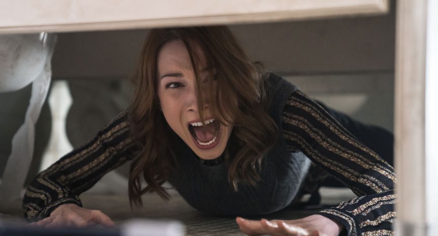 It’s not long before Michael catches up with Aaron and Dana, who become his new targets. What starts off with Dana making a routine trip to a remote gas station bathroom quickly turns deadly when a stranger enters and tries to open her stall door. She politely explains that the stall is occupied, but her uncertainty turns to cold fear when the figure starts rattling the door. Dana doesn’t know who it is, but from the bottoms of his navy-blue overalls and grimy hands dropping extracted human teeth in front of her, we do. Michael has found her. It’s an unsettling image but even more upsetting and anxiety-inducing is that Michael ignores the societal norms and politeness of Dana’s “excuse me,” setting Dana and her suspicions (and ours) on edge. She’s alone, vulnerable, and suffering mental duress and physical torture, largely because she’s an obstacle preventing Michael from getting what he wants. It’s also notable that her placement on the toilet is reminiscent of Marion Crane’s placement in Psycho’s shower sequence, driving home the horrors that come with invaded privacy and intense vulnerability.
