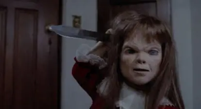 Official Synopsis: The future looks bright for newlyweds Trevor and Holly, but their dreams are about to devolve into a nightmare of unspeakable terror. On a random visit to a tarot reader, they encounter a mysterious old woman who tells them that Holly is pregnant. But soon, their joy is overshadowed by a mounting sense of dread that something sinister lurks within Holly’s womb. As the child grows within her, she begins to exhibit increasingly bizarre and violent behavior. Desperate to save his wife and unborn child, Trevor searches for answers and discovers Holly may have fallen prey to an ancient curse spawned by an evil demon with an insatiable lust for blood.