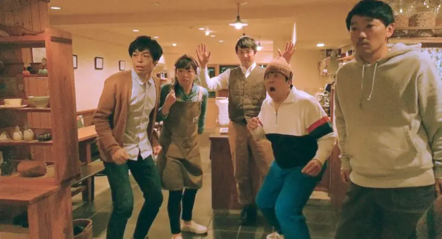 Beyond the Infinite Two Minutes is extremely deadpan and dry, making the entire thing much easier to swallow. Shot on an iPhone, the fluid, urgent camera movements give the impression of a oner but, judging by the fascinating behind the scenes footage that plays over the closing credits, each scene was set up very specifically. Sharing a similar energy and humour to One Cut, the film is endlessly inventive, entertaining, and funny with just a couple locations used and a non-invasive score only piping in at key moments, rather than forcing us to feel something artificial. The camera weaves in and out of spaces big and small alike, making us feel as though we’re running alongside Kato and his excitable friends.