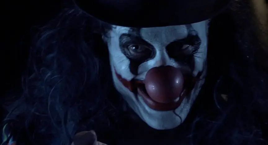 Writer-director Todd Sheets wasn’t going for realism or logic, though. The name, Clownado, is a good indicator that the movie is trying to pull out all the stops, and that’s where it falls flat. The titular tornado full of clowns is a light gray swirl that doesn’t tear up buildings or throw clowns through windshields at one-hundred miles per hour. Instead, the clowns dissolves in under it.