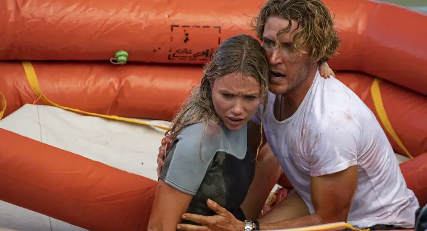 Although certain parts understandably must be shot in a tank, to protect the actors and crew, these moments are also woefully obvious chiefly because of how stunning and expansive the cinematography is when the group is genuinely out at sea. However, a shipwreck that appears to be really there almost makes up for it, especially given how well it’s used as a kind of underwater torture chamber. If the crew created it, fair enough, but if the rusted thing was there for real, it’s a brilliant find. Elsewhere, director Wilson plays with silence and darkness well even if he does succumb to the strange shark roaring thing that’s become prevalent in these movies (do the little ones bark?).