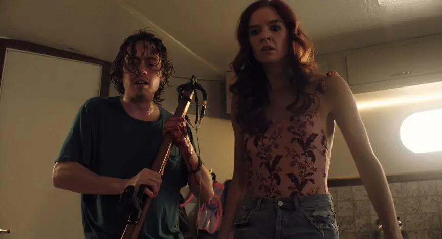 It’s to his immense credit that the Turbo Kid breakout commits fully to Jonah’s many contradictions. He spends much of Harpoon soaked in blood, eyes wide and pleading, but never loses the innate likeability that makes his friends trust him unequivocally. The tension at the film’s heart wouldn’t exist if Jonah wasn’t something of a question mark, and Chambers ensures it’s never quite clear what he’s really thinking, even when his hand is basically falling off and he seems completely indisposed.