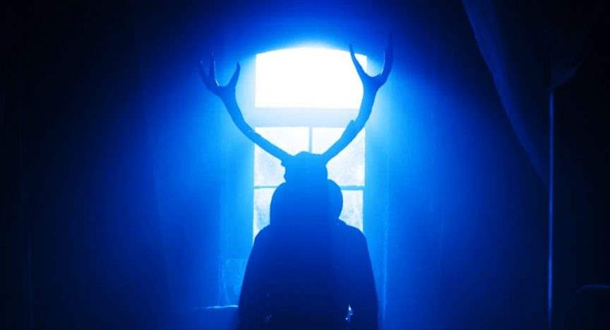 In The Mansion, Nadine (Nathalie Odzierejko) and Fabrice (Marc Jarousseau) rent an isolated manor to bring in the New Year with several friends. When evening arrives, they host a party with a Year 2000 throwback theme. Most attendees are in festive spirit, dressed in costumes ranging from rapper Nelly to Hogwarts’s Ron Weasley. But as the night progresses, one costume appears that does not fit with the others. This human-shaped figure with antlers travels in and out of the mansion’s shadows, slaughtering the friends, one by one.