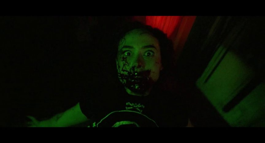 She’s been clean for a while, but she decides that drugs are the only way she’s going to finish the painting on time. Her inspiration of choice is the titular bliss, a mix of cocaine and DMT. Dezzy passes out at her dealer’s house after a sample bump. When she wakes there’s a party outside her friend Courtney (Tru Collins) and Courtney’s boyfriend Ronnie (Rhys Wakefield) want to hang out. They have a threesome as Dezzy hallucinates, and she wakes with two puncture wounds on her neck.