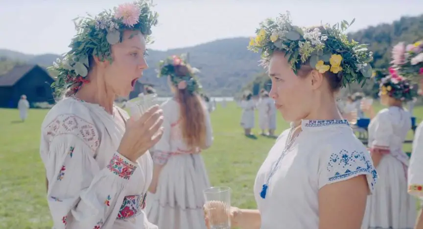 Christian reluctantly agrees to let Dani come away to Sweden with he and buddies Mark (Will Poulter, twisting his face into a near permanent smirk), Josh (The Good Place‘s William Jackson Harper) and the clearly meddlesome Pelle (Vilhelm Blomgren, darkly cherubic), who’s their all important in with a loony commune who farm their own food and only passingly consider incest a taboo. At first, it all seems fairly idyllic. There are free drugs, the women are Swedish and therefore stunning, and it never gets dark or cold even at nighttime. But then, after witnessing a horrific ritual event, the group slowly starts to realize all is not well in Sweden.