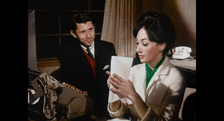 In his relentlessly sluggish films, Sarno fills his placid compositions with boilerplate titillation. The expressive black and white of The Naked Fog lends a beauty to the numbing plod of the film. The dour coastlines are a melancholy salve to the quaint softcore debauchery. Meanwhile, in Moonlighting Wives, acidic color emphasizes the ambitiously lurid enterprise of the film’s central stenography service/prostitution ring. When the characters step outside, into the normalcy of the light of day, the bland suburban desolation depicts something like an empty existence. But the elegantly staged and shadowy exploitation can’t be the only way to express oneself, to escape mundanity, to make money, to find catharsis and pleasure? Can it?