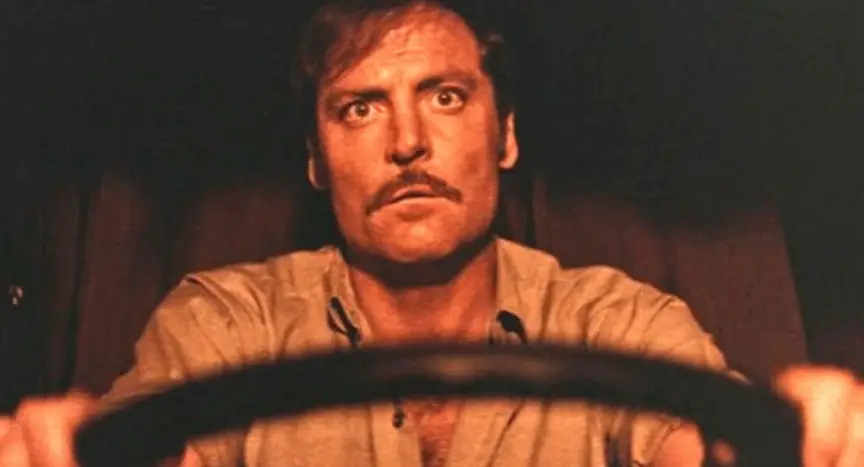 1981’s Road Games is directed by Richard Franklin and stars Stacy Keach, Jamie Lee Curtis, Marion Edward, and Grant Page. Pat Quid (Keach) is an imaginative American truck driver hauling meat across Australia. One night outside a motel, Pat sees a man (Page) with a hitchhiker go into a motel, and the next morning he starts to play an imaginary game that the man is possibly a killer. Unfortunately, this coincides with news reports of a real madman picking up hitchhikers. Pat eventually picks up his own hitchhiking companion (Curtis), and the two soon realize that their playful road games of identifying a killer is leading them straight into the crosshairs of a psychopath.