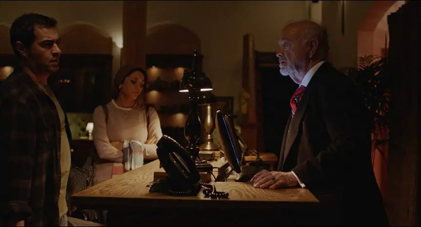 Early in the movie, Ahari hints at multiple reasons that this is happening to Babak and Neda. It could be that whatever Babak hit, as suggested by a black cat motif, getting its revenge on them. Maybe their new tattoos—either half of a runic symbol tattooed on their respective forearms without knowing what it meant—are cursed? Could this hotel in California (“You can check out any time you want / but you can never leave”) itself is the source of their supernatural suffering? There are frequent uses of the phrase, “No way out,” maybe referencing Jean-Paul Sartre’s famous play about hell, No Exit.