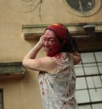One Cut of the Dead opens with a character played by Chinatsu (Yuzuki Akiyama) leveling an axe at Ko’s character Ken (Kazuaki Nagaya). He’s a zombie, and she begs him, “Ken! Stop!...